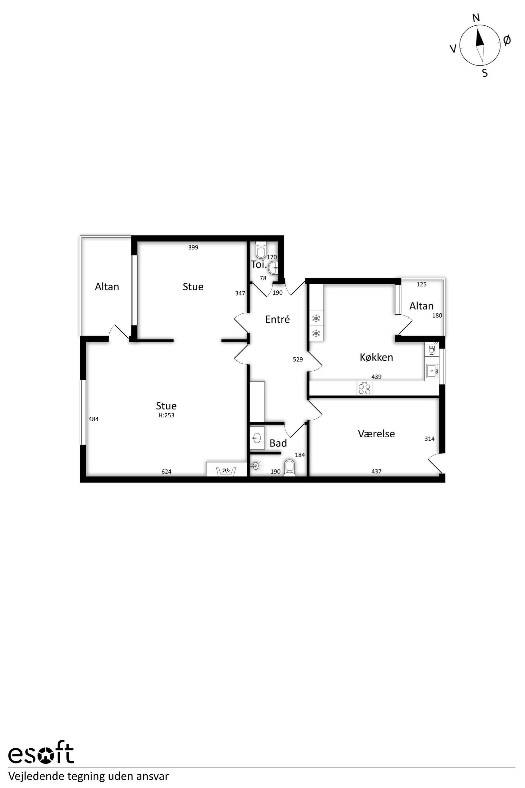 vigtigt, gæstetoilet med vask. Smukt, nyt HTH spisekøkken i mørke trælamel fronter med plads til 2-4 spisende -