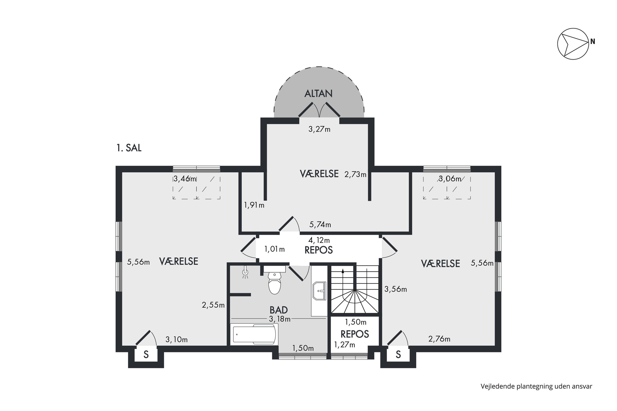 Via flot svungen trappe er der adgang til en helt fantastisk 1. sal. 2 kæmpe store børneværelser,